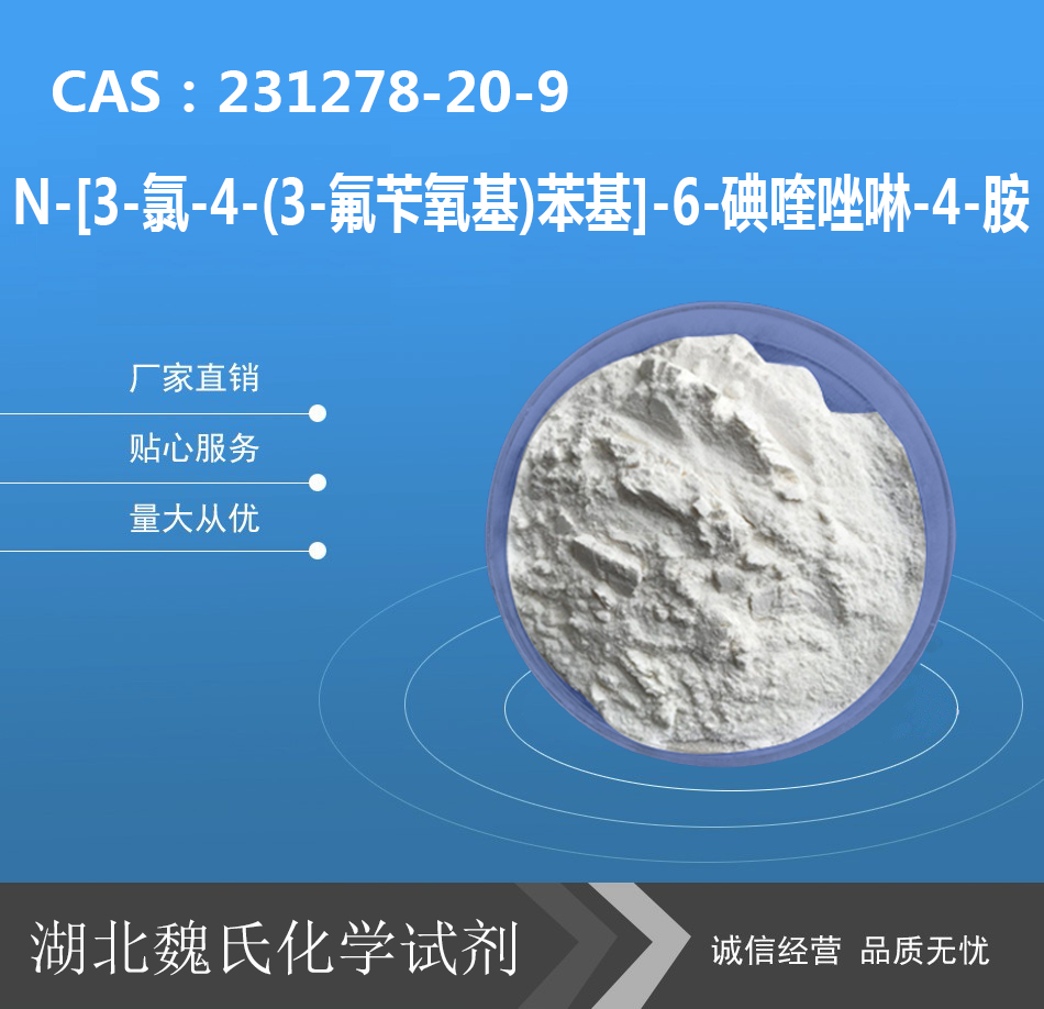 湖北魏氏化学专注打造N-[3-氯-4-(3-氟苄氧基)苯基]-6-碘喹唑啉-4-胺科研试剂现货供应商